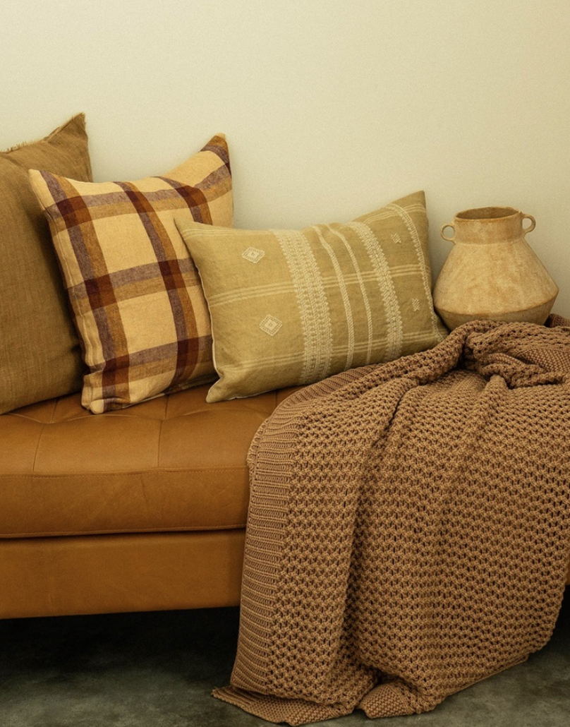 Experience the artistry of the Bhujodi Wool Handloom Pillow, crafted using a 600-year-old traditional method known as kutch weaving. Meticulously hand-loomed from wool, this process employs an extra-weft technique, resulting in distinctive designs adorned with geometric patterns. Complete with a premium feather down filler for fabulous fluff factor and comfort you'll want to sink your head into. Spot Clean.