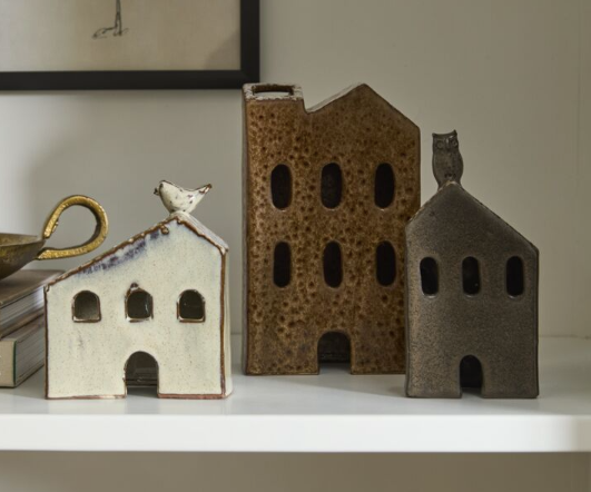 Make holiday memories by creating a winter wonderland with the Village House Collection, a charming ceramic collection of snow dusted houses with cut out windows and doors. These hand-painted houses feature a warm cream reactive glaze, and a little bird at the peak of the snow dappled roof. Arrange a collection of Village Houses together with the Village Trees for a delightful holiday scene.