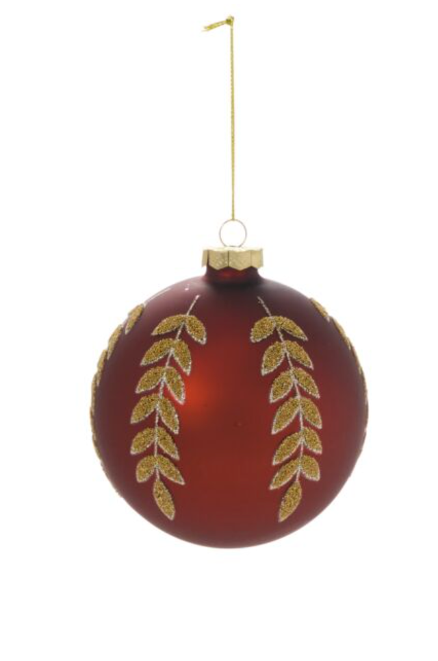 Sparkling scalloped lines trim the warm brown base of the Adriatic Ornament, a beautiful glass sphere with dimensional details and a brilliant glow. Trimmed in thin lines of glitter and capped with a small gold top and string, both lightweight sizes of the Adriatic bring stunning style to the Christmas tree.
