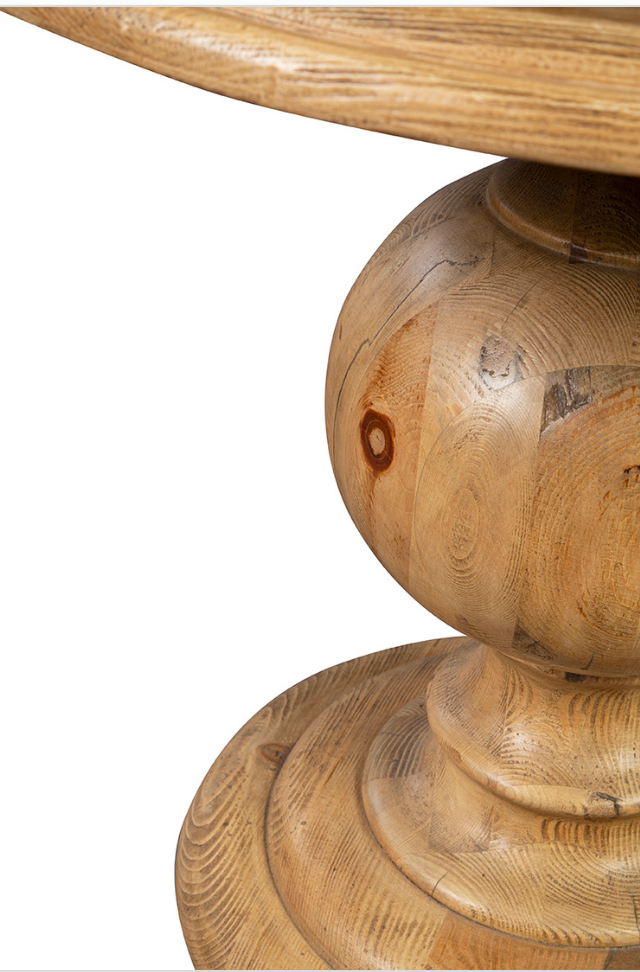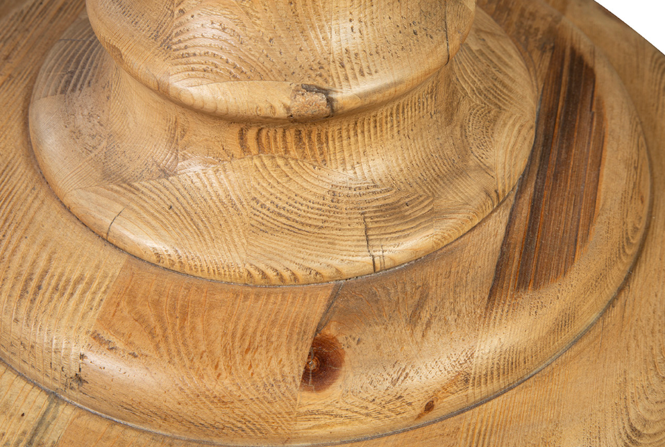 Hand crafted on a lathe, this side table features a distinctive bulbous pedestal base and a planked top. This might just "turn" out to be your favorite accent piece in the room. Sorry for the pun!
