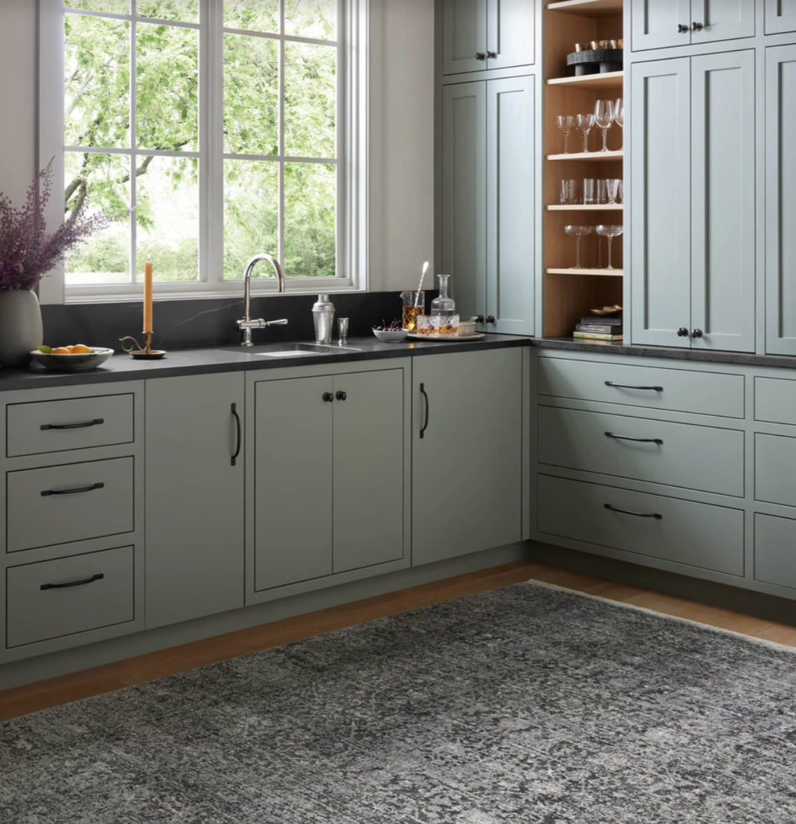 The Sonnet Collection is a versatile area rug with traditional motifs that appear to float and fade from the surface, the result of a new power-loomed construction that combines yarns of different textures. The rug is made of space-dyed polypropylene and polyester for a gradient range of colors that shift with the light. A hint of fringe in most sizes, combined with the meticulous design, makes it hard to tell that this rug isn't handmade.