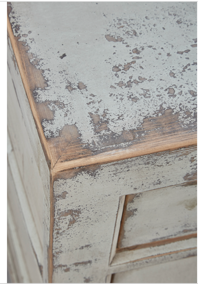 Storage, storage, storage, and tons of style as well! This reclaimed pine sideboard is finished with a soft gray blue paint. The finish is further enhanced with realistic distressing which replicates the ravages of a life well lived. Ring pulls adorn the drawers and doors.