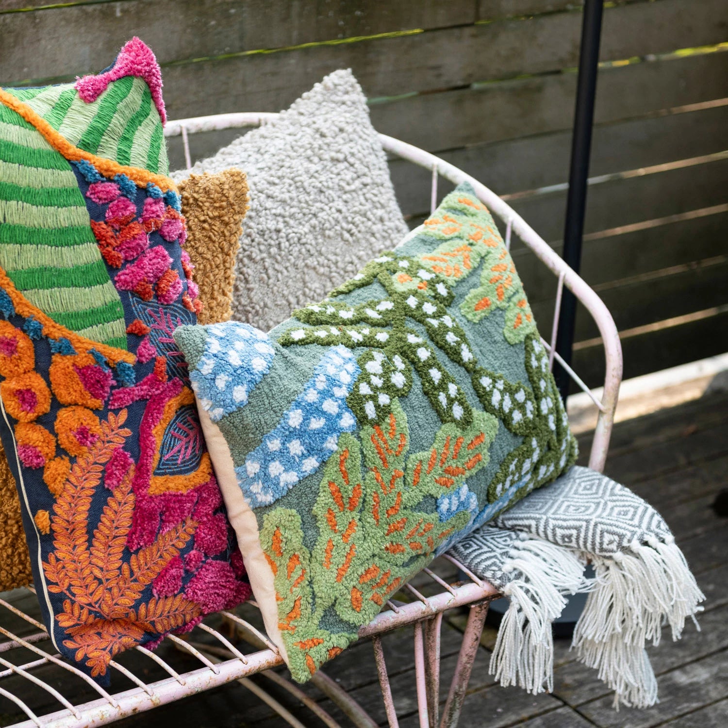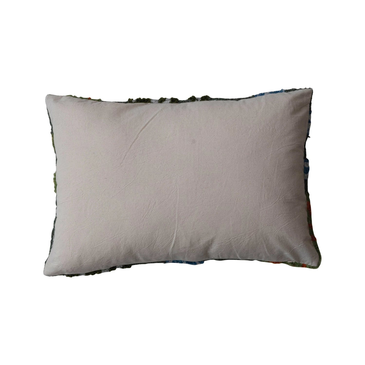 24"L x 16"H Woven Fabric Indoor/Outdoor Lumbar Pillow w/ Tufted Botanicals & Chambray Back, Multi Color