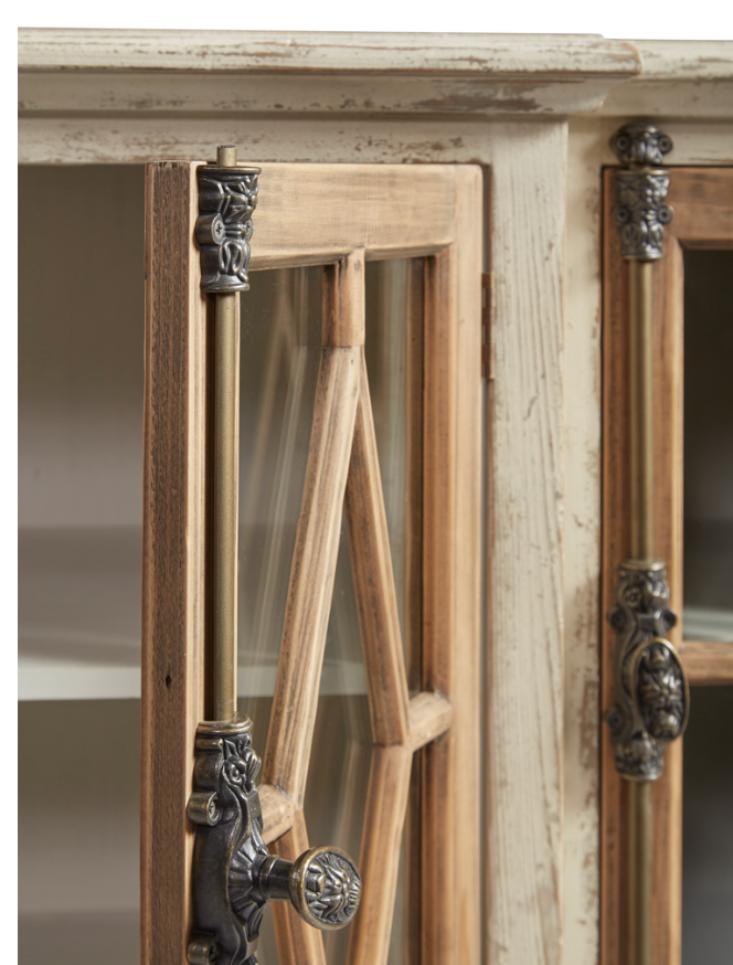 This lovely server is not just for the dining room! Handsome and able to store and display your family china, this cabinet is just as happy to anchor the family's big screen TV or a treasured piece of art. Working cremone bolt locks offer a touch of antiquity, while the light cabinet and warm wooden doors with diamond grids add a touch of contrast for visual interest.
