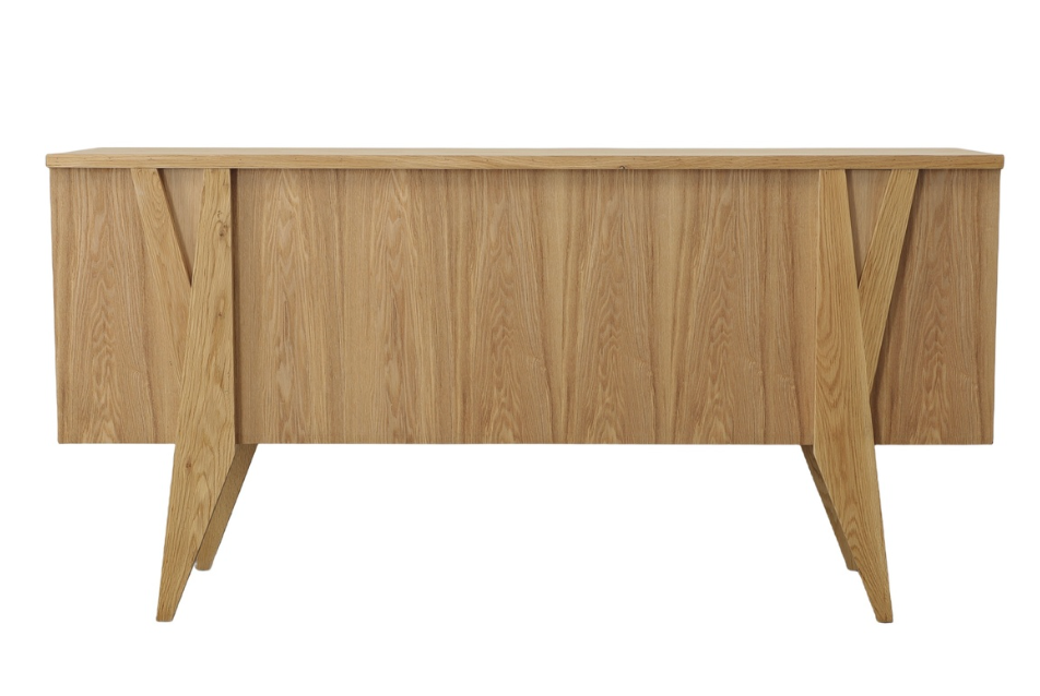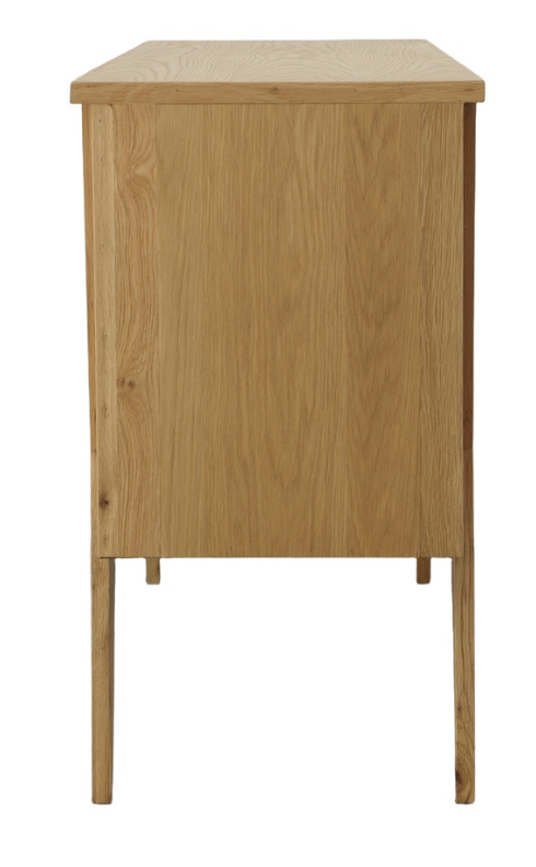 *Opportunity Buy - All Items are sold as is, no returns unless damaged upon receipt. Uniquely designed to be able to float in a room, this sideboard features the same design elements on both front and back. The only difference is that one side features a pair of push open magnet closure doors which conceal the ample storage within. The soft natural finish allows the wood grain to shine through, and blends beautifully with many palettes.