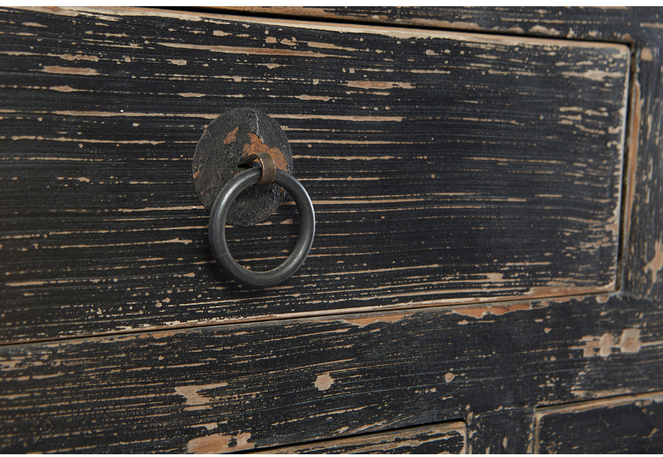 Choose this striking piece as the anchor for your design, and you won't go wrong. Strong simple lines, coupled with a hand scraped black finish, make this piece a sophisticated focal point for any inspired interior.