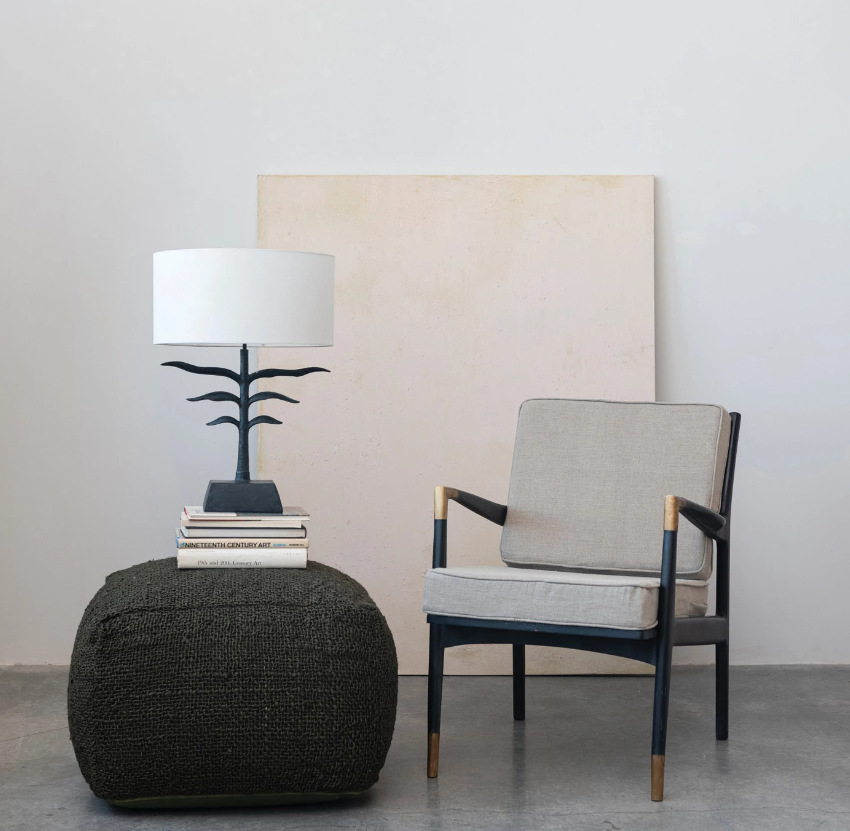 Illuminate the space with this resin leaf-shaped table lamp that features a Scandinavian-inspired design. This table lamp showcases a botanical base made of resin and plastic, creating a durable and realistic look. The base has an antique bronze finish that adds a touch of warmth and sophistication to the lamp, while the fabric drum shade creates a soft and cozy light that complements the base. The shade is made of linen, which is a natural and breathable fabric. This table lamp is suitable for any living space that needs natural beauty and elegance, such as the living room, bedroom, office, or any other area.