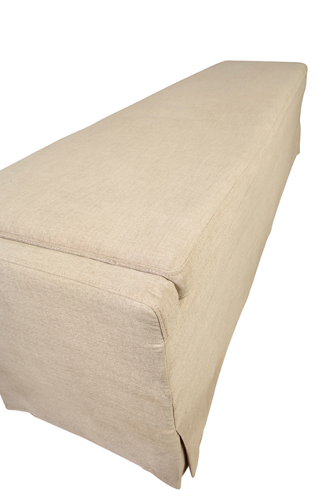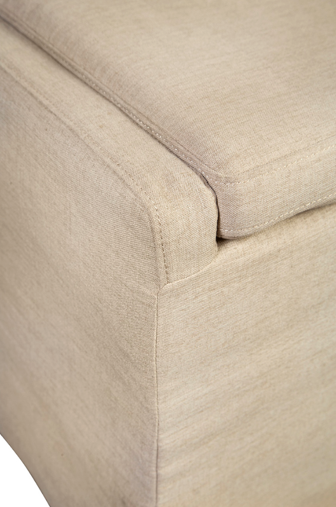 A nod to sustainability with this one. Made from reclaimed oak that has been carefully sourced and repurposed; covered in performance linen fabric, this bench is a versatile piece that effortlessly complements various styles and functions while possessing durability and easy maintenance.