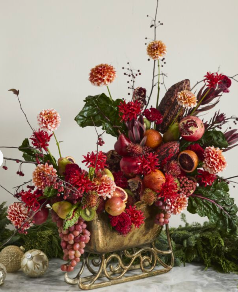 Oh what fun it is to display holiday plants and decor in the Vintage Sleigh Planter, a beautiful, traditional winter sleigh with an antique gold finish. With an elevated base that has scrolling details, and roomy interior, this cast aluminum sleigh can easily be filled with shiny ornaments, a small seasonal tree, or a large scale fresh floral arrangement. The Vintage Sleigh Planter is a perfect centerpiece for a holiday dinner table.