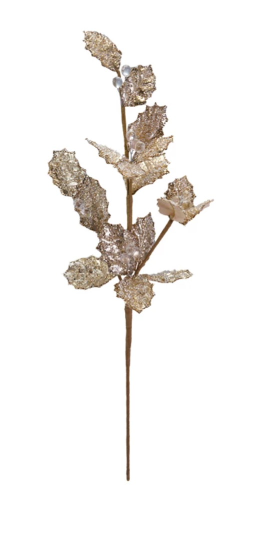 XS9356 Polyester beaded Leaf Spray Fabric with Ice